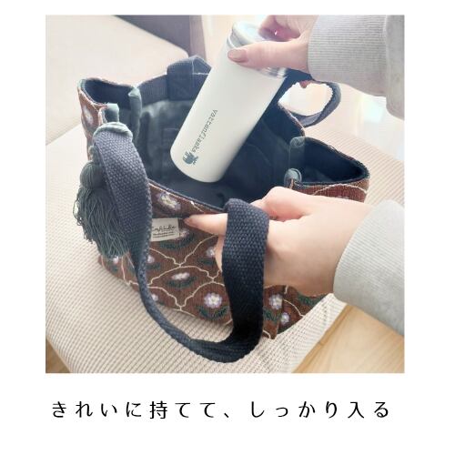 落ち着いた色合いの中に、可憐な花柄が浮かび上がるジャカード織りのトートバッグ。