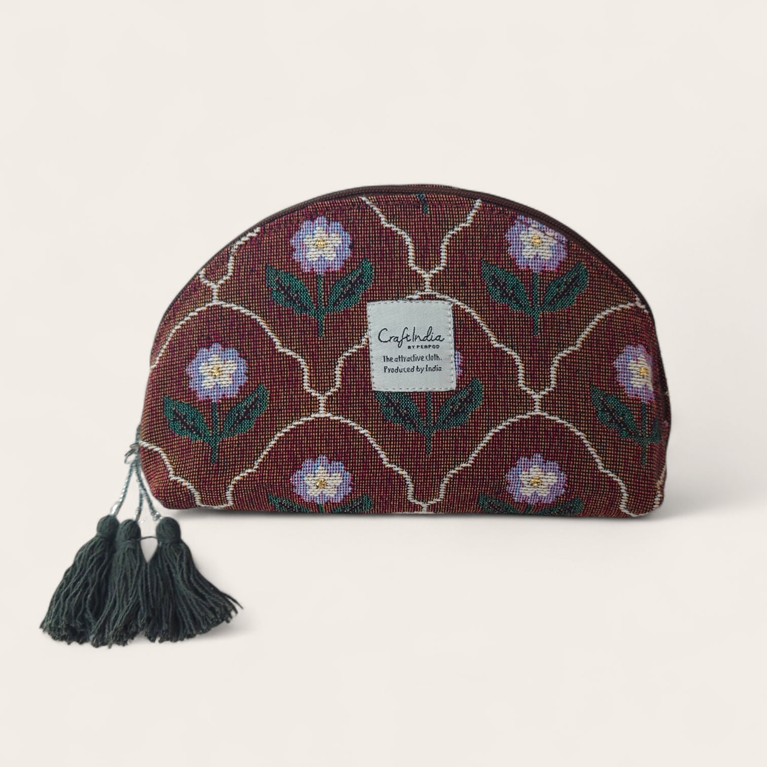 ジャカード織りのタッセル付きポーチ。
