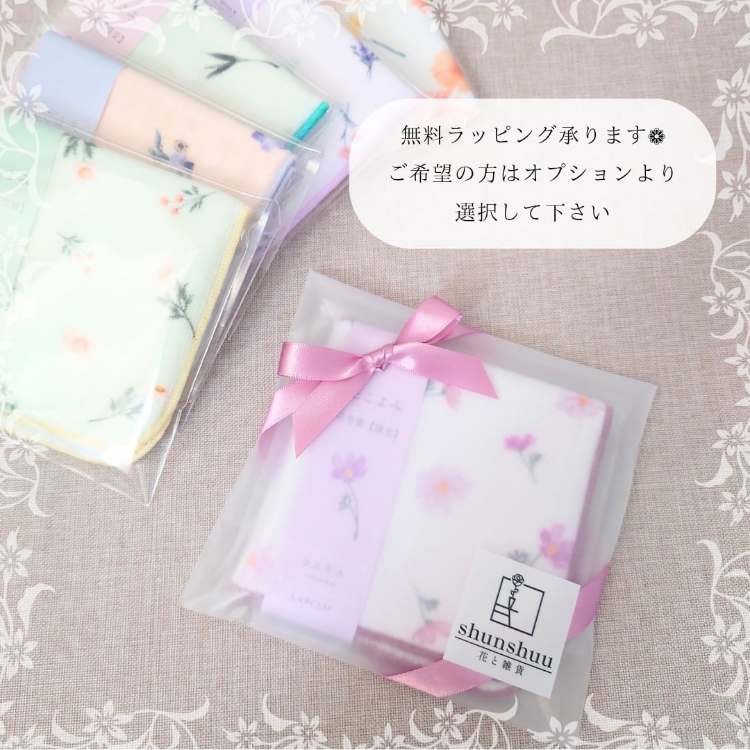 やさしい花柄に、そっと添えられた花言葉の帯。