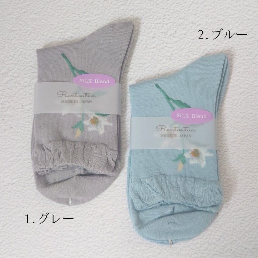 可憐に咲くリリーをワンポイントに添えた、上品な印象の靴下。