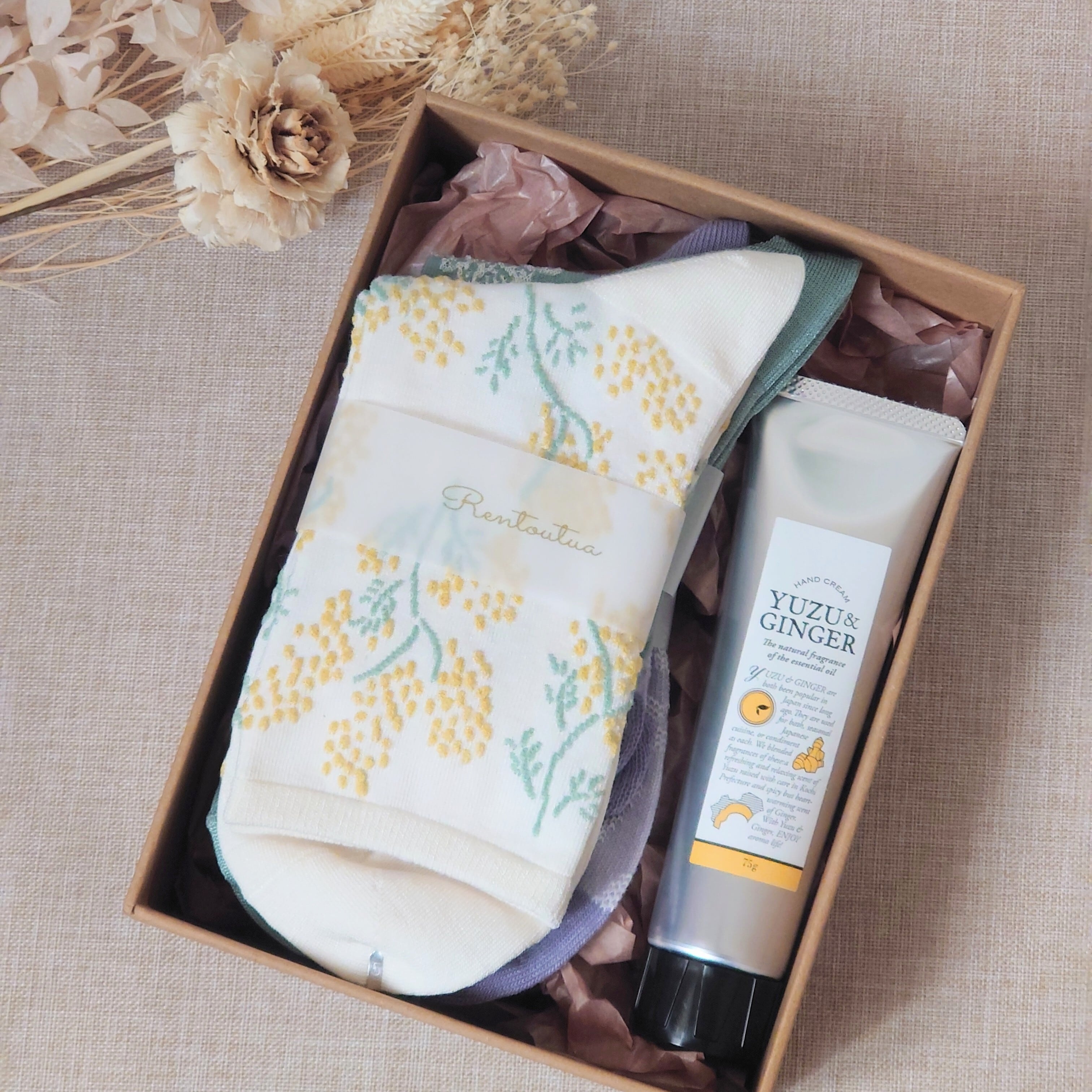 ギフトボックス ソックス&柚子ジンジャーハンドクリーム