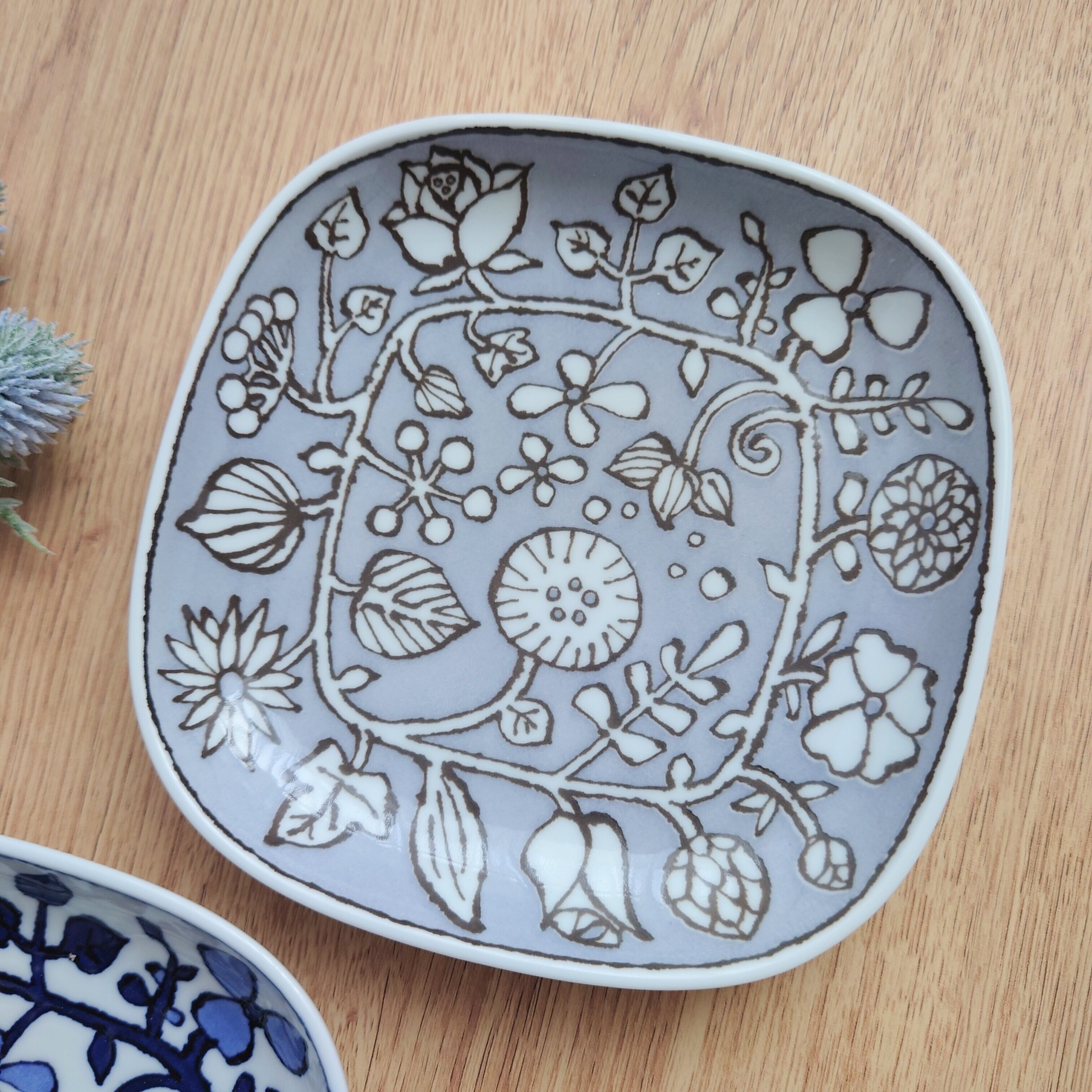 波佐見焼のあたたかみを感じられる、花模様の角皿。
