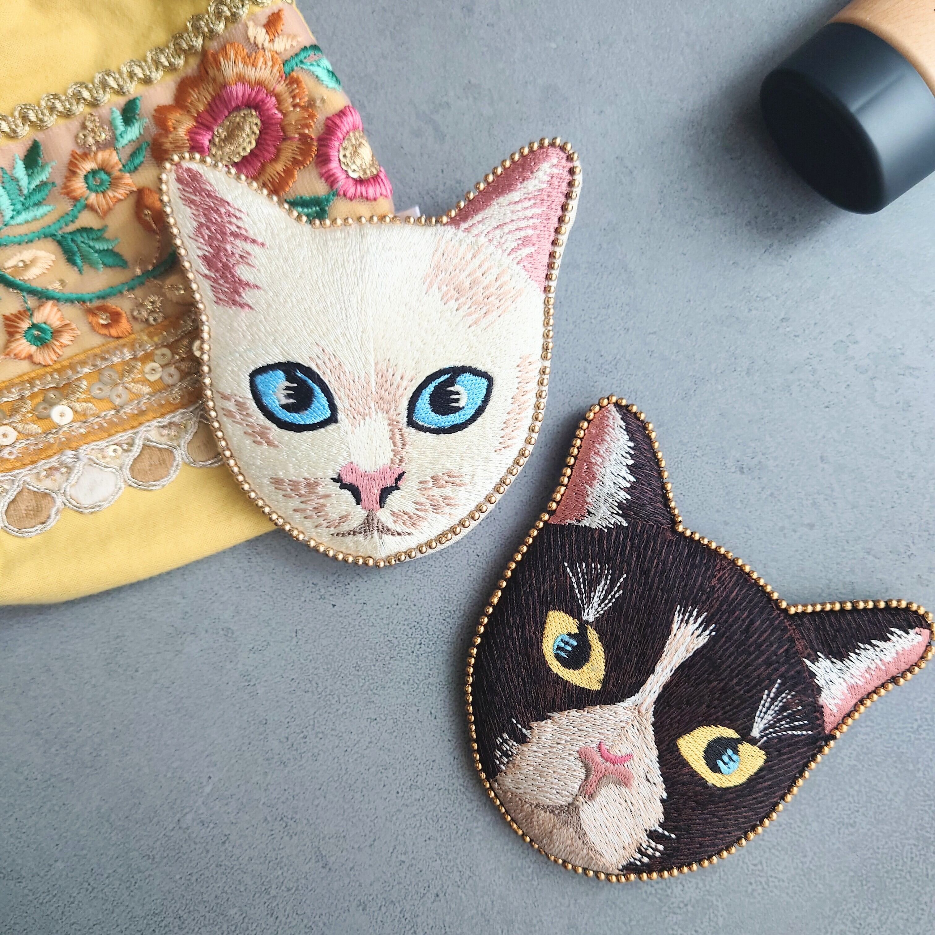 キャット刺繍ミラー