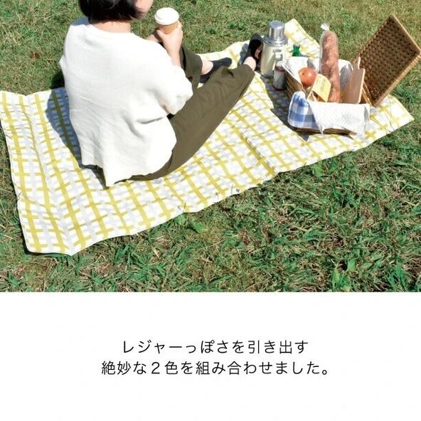 チェック柄の明るい色味でアウトドアやピクニック、ビーチでの使用にぴったりなアイテムです。