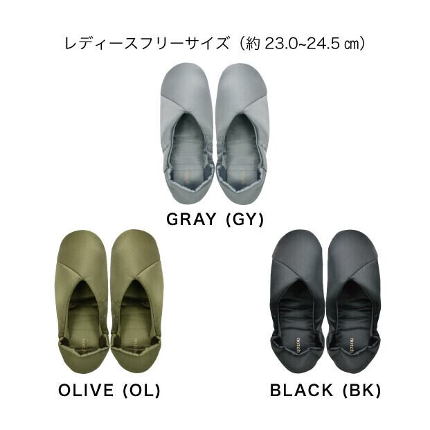 快適な履き心地とやわらかな美しさを兼ね揃えたサテン生地のポータブルスリッパ。