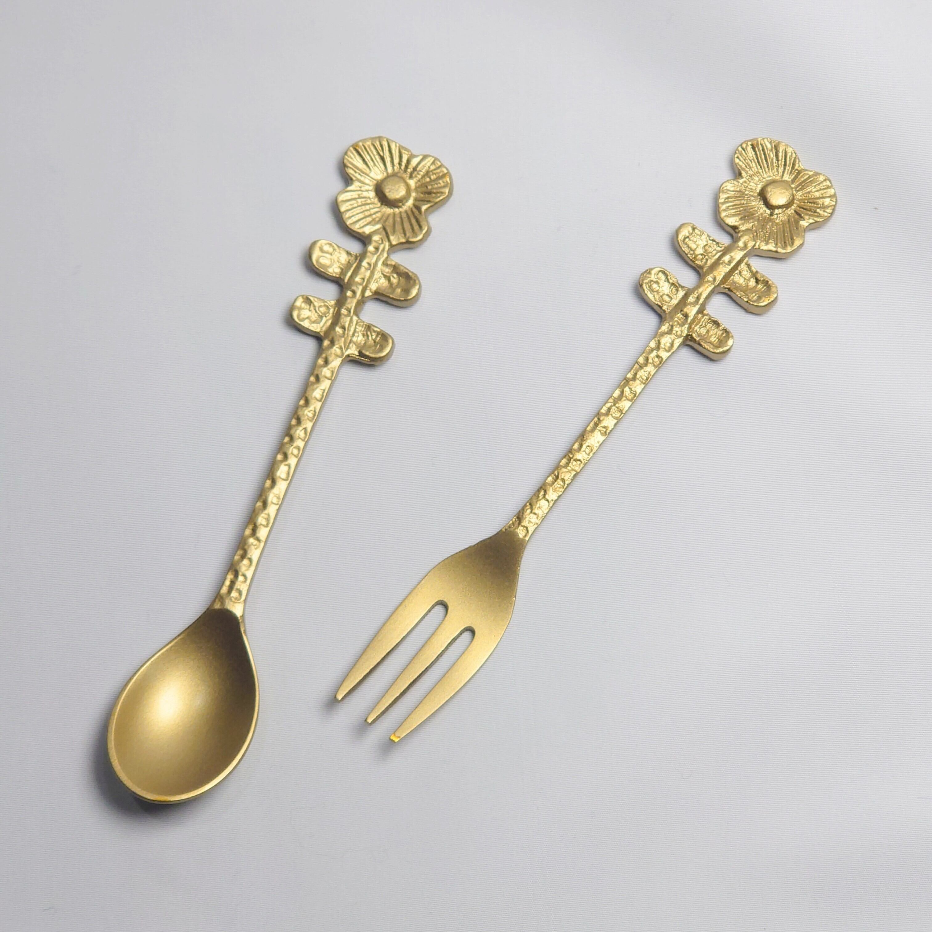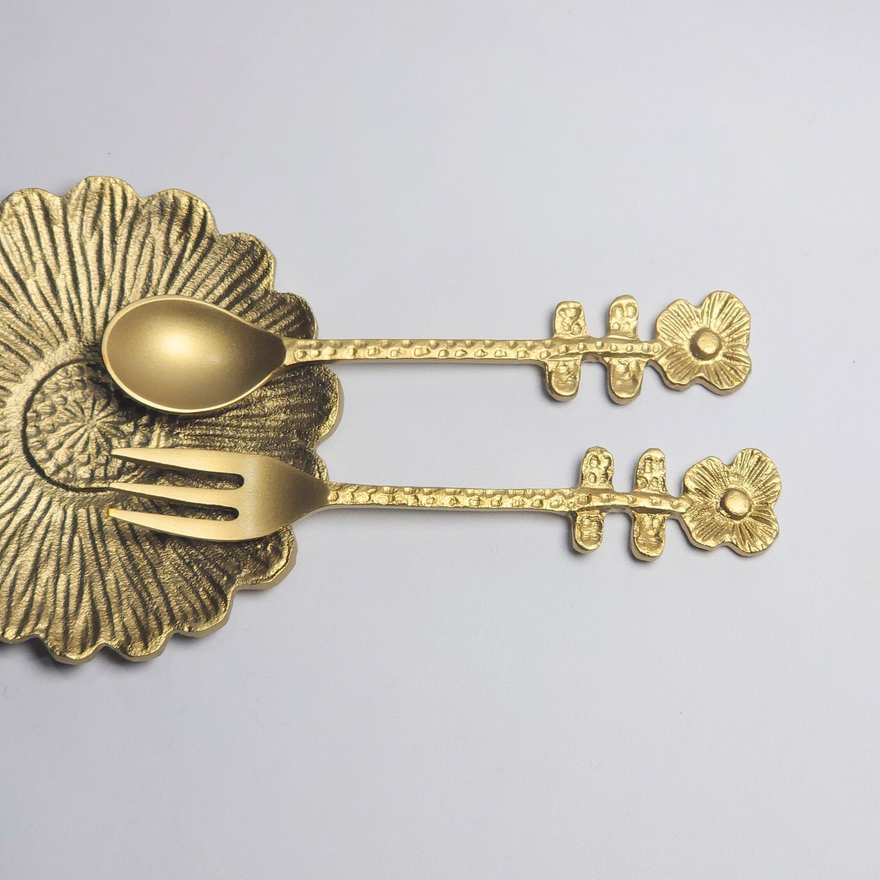 お花をモチーフにしたブラス(真鍮製)のカトラリーです。